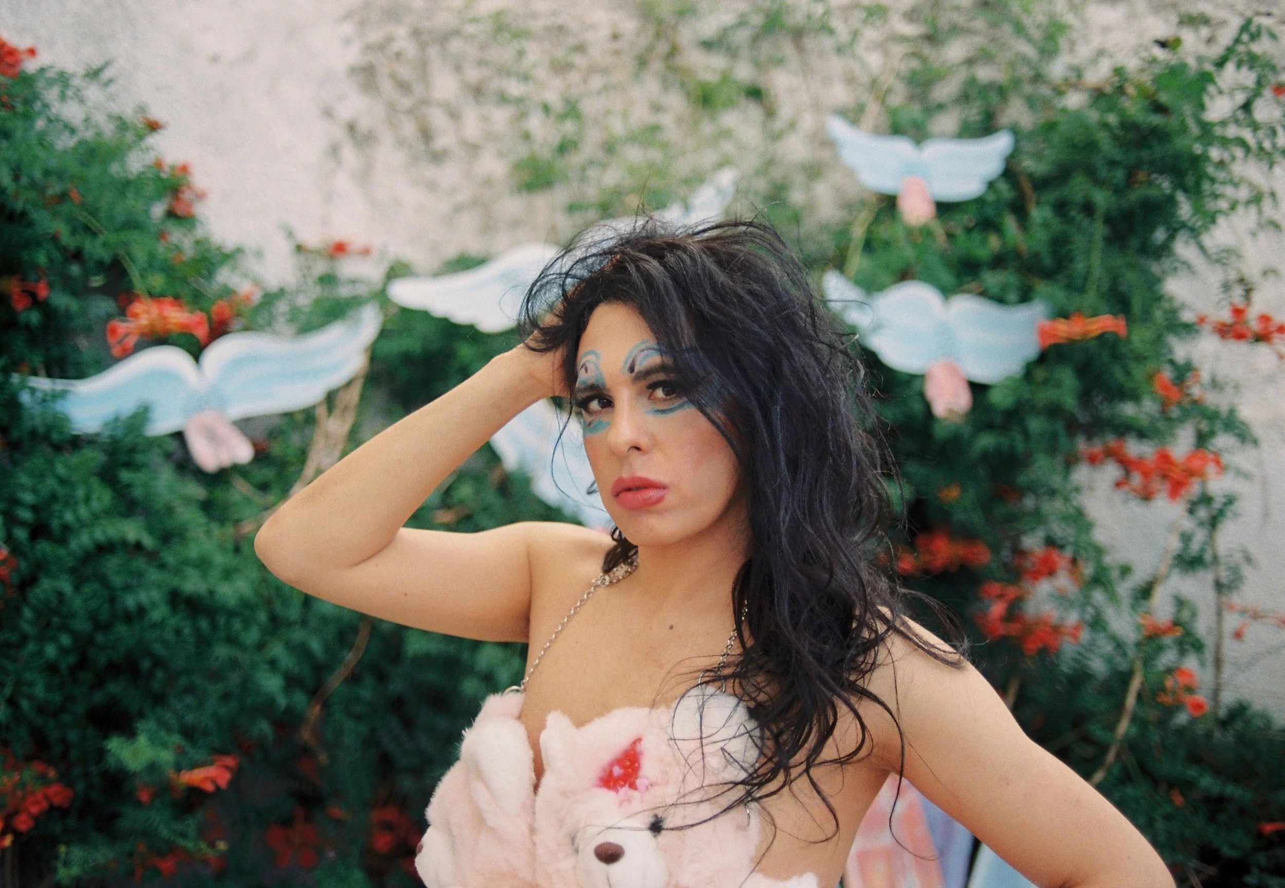 Didirella is a Brazilian trans travesti superheroine living in Lisbon. She studied at the same school as Carlos Drummond de Andrade and Guimarães Rosa, where she bravely exercised her gender freedom amid bullying and harassment. To celebrate her transition, she released the visual album SUPERPUTA SPIRITUAL, composed exclusively for her by Diego Bragà, a hyper-pop delight. She was canceled, acclaimed, and resurrected. Every day, she locks herself in her room and dances frenetically toward a beautiful future ahead. As a transfeminist sex symbol, her creation is theatrical, sensory, and cathartic, connected to archaeology & ancestry, eroticism & spirituality, and magical abundance. She is happy.